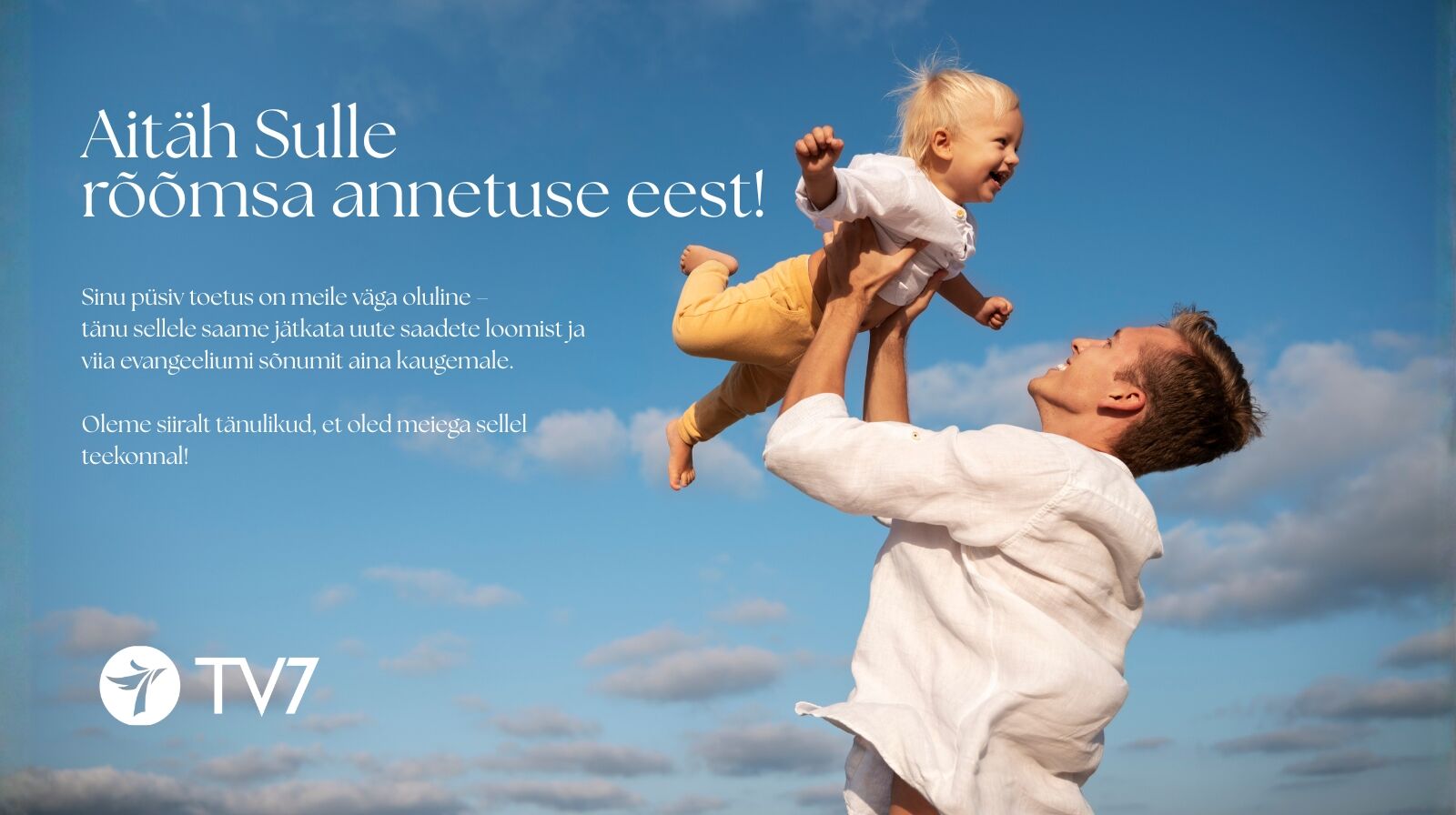 Hetkel toetab Taevas TV7 tööd umbes 4% vaatajatest. Jätkusuutlikuks arenguks otsime juurde 1000 uut püsitoetajat, kes tuleksid kaasa toetusega 15 eurot kuus.